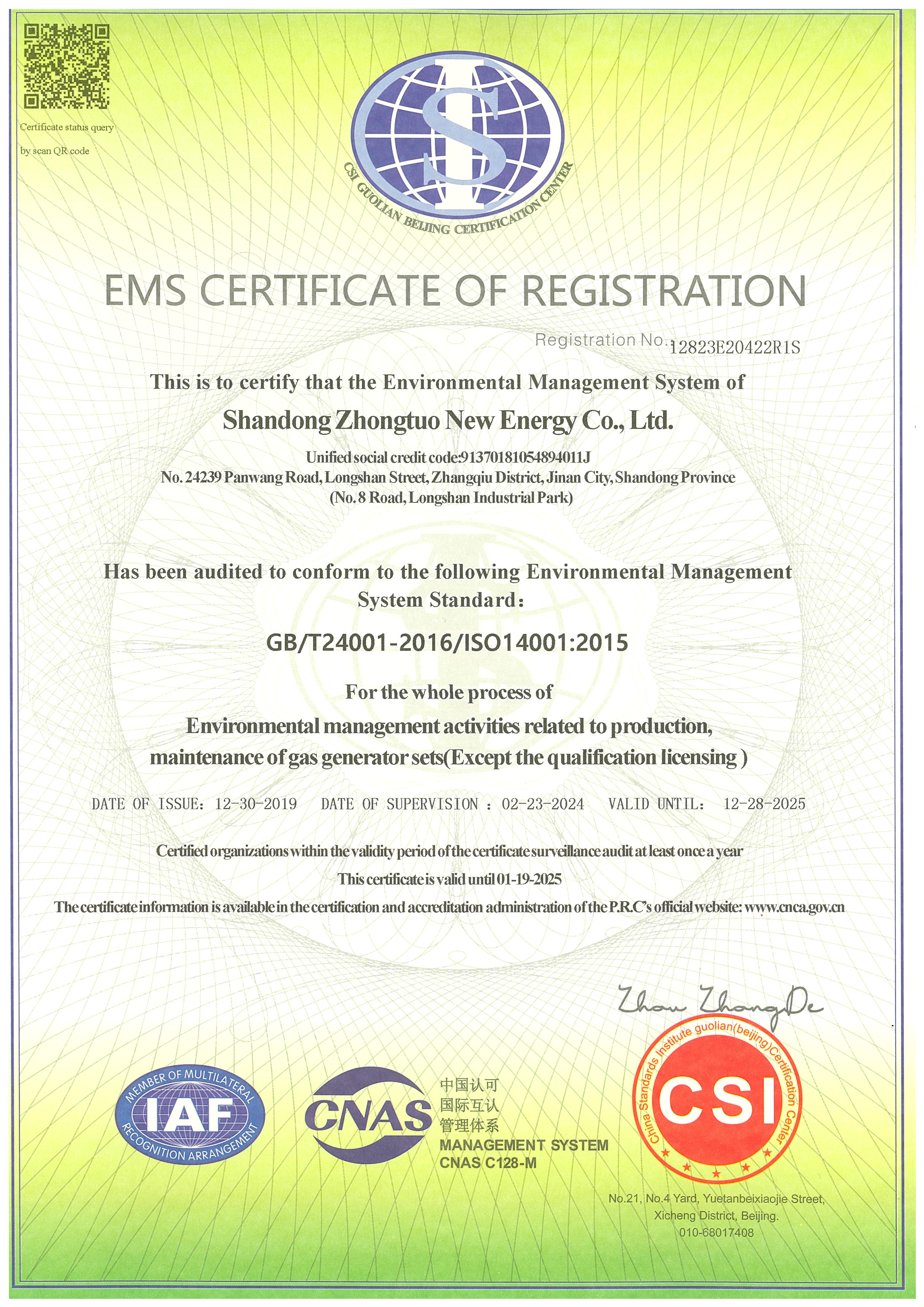 環(huán)境管理體系認(rèn)證證書(shū)國(guó)際